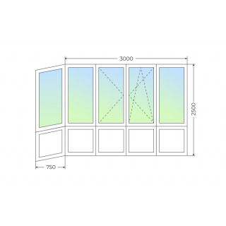 Теплое остекление Г-образного балкона с поворотными и поворотно-откидной створкой и глухим нижним рядом